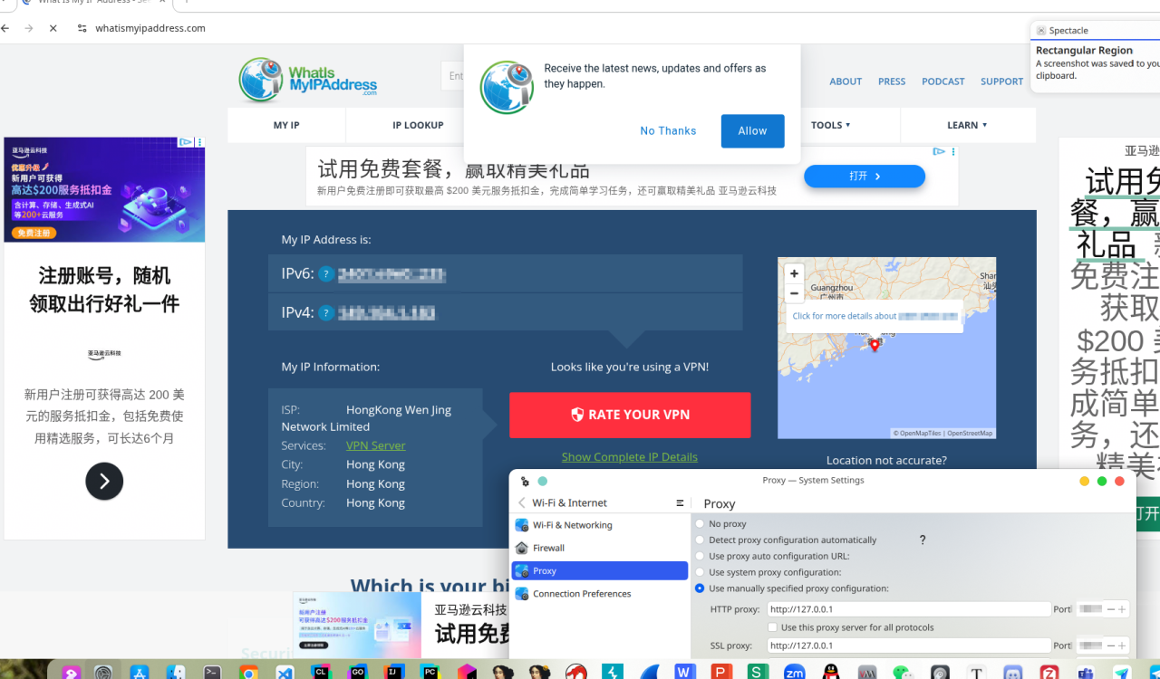 然后在系统设置里配置一下手动代理即可,V2rayN 默认监听 10808 端口: